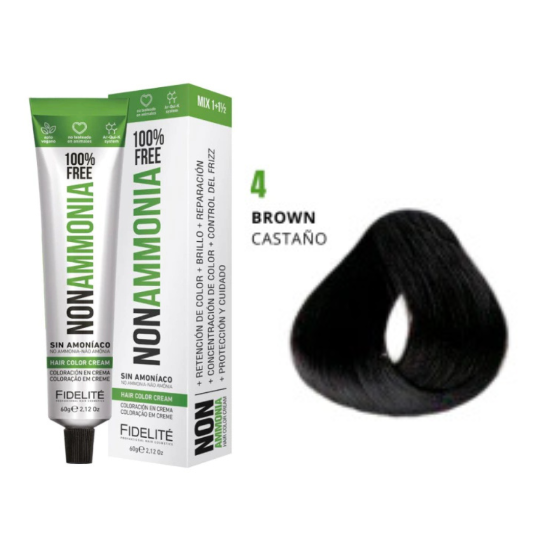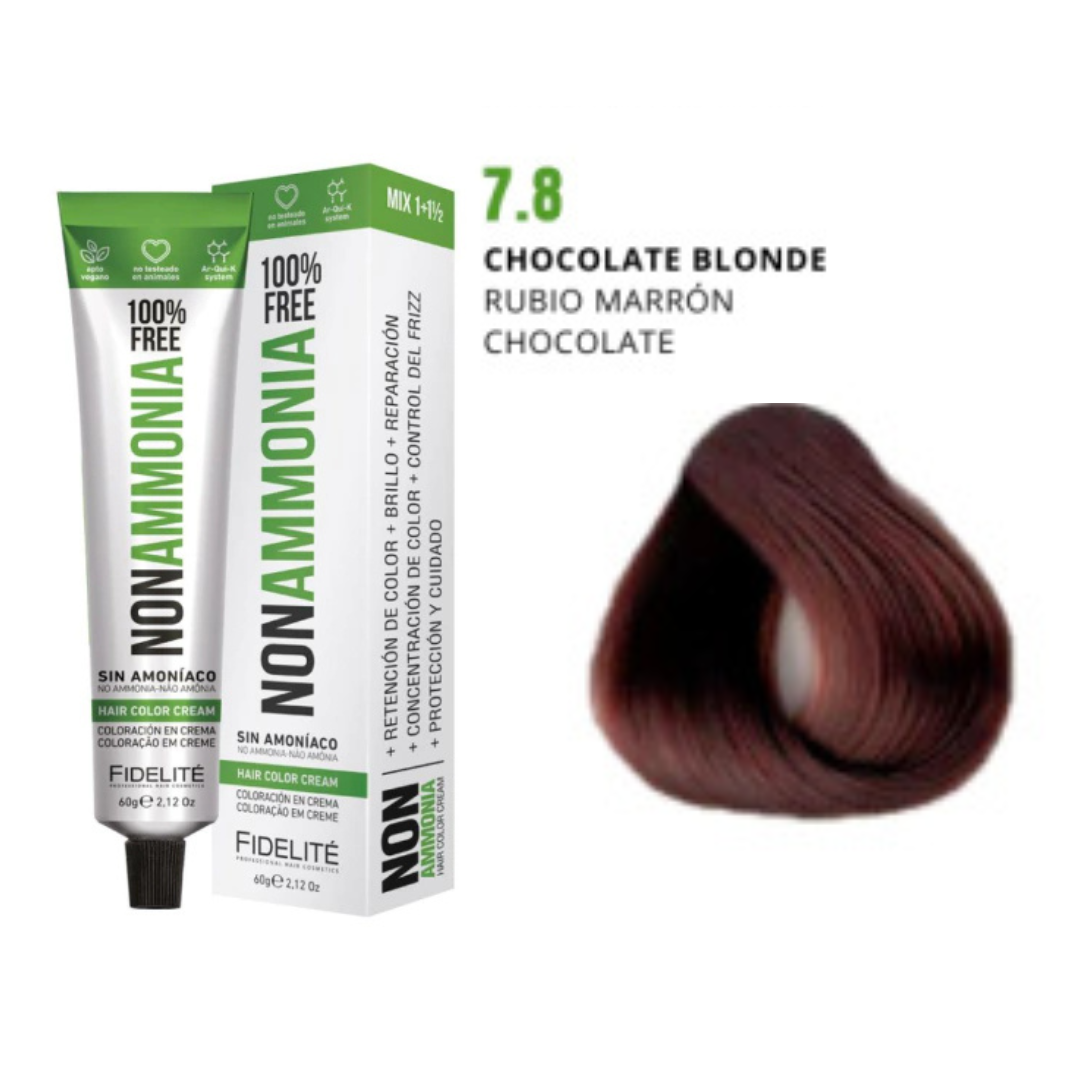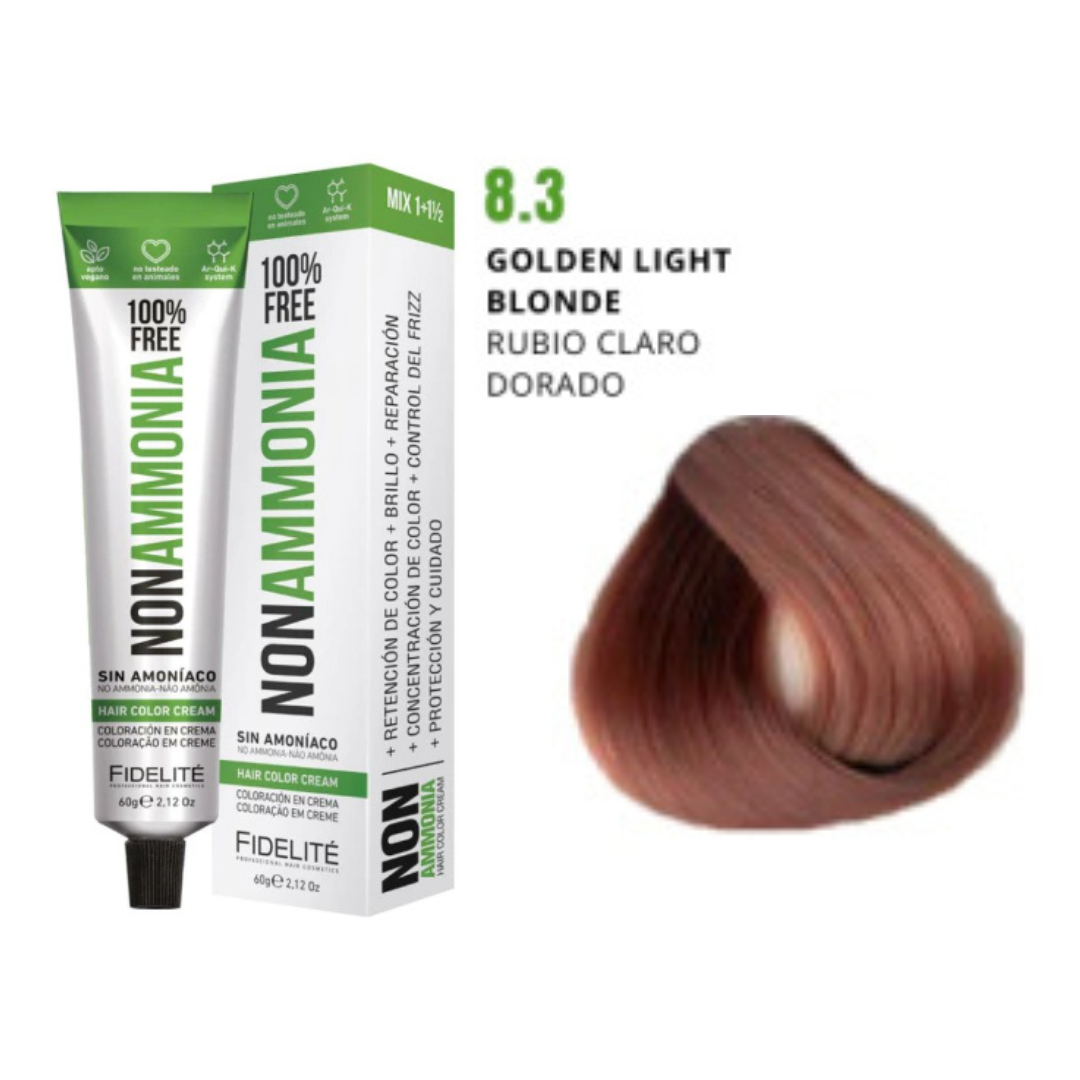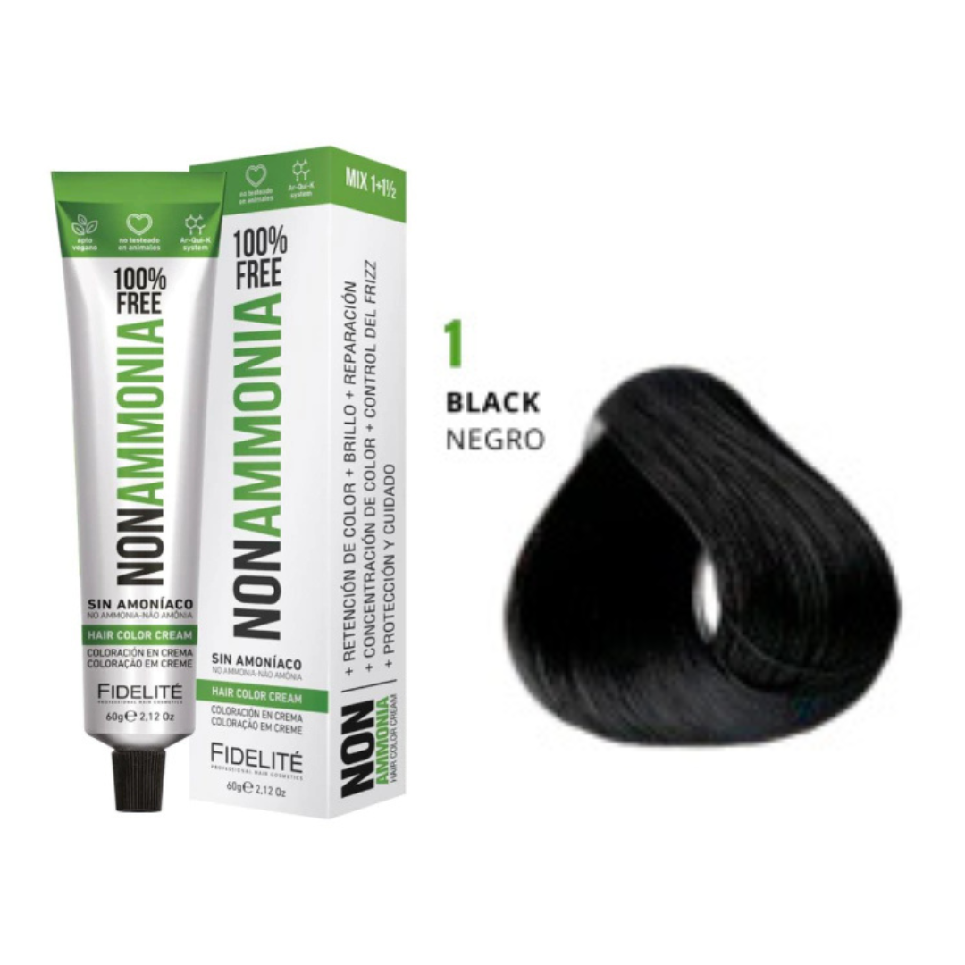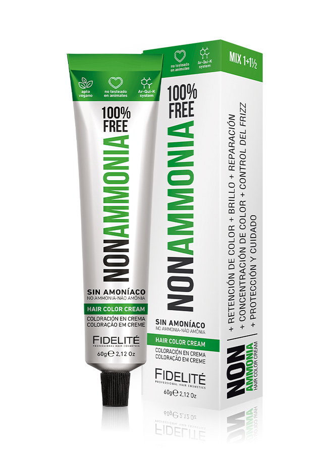 - El revelador utilizado. Por eso esta tintura debe utilizarse con el exclusivo REVELADOR FIDELITE NON AMMONIA, EN CREMA PARA TINTURA SIN AMONIACO.