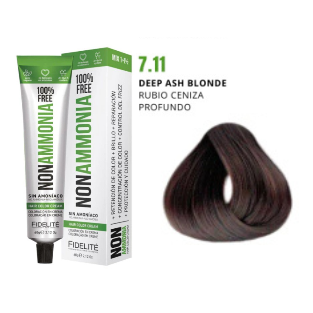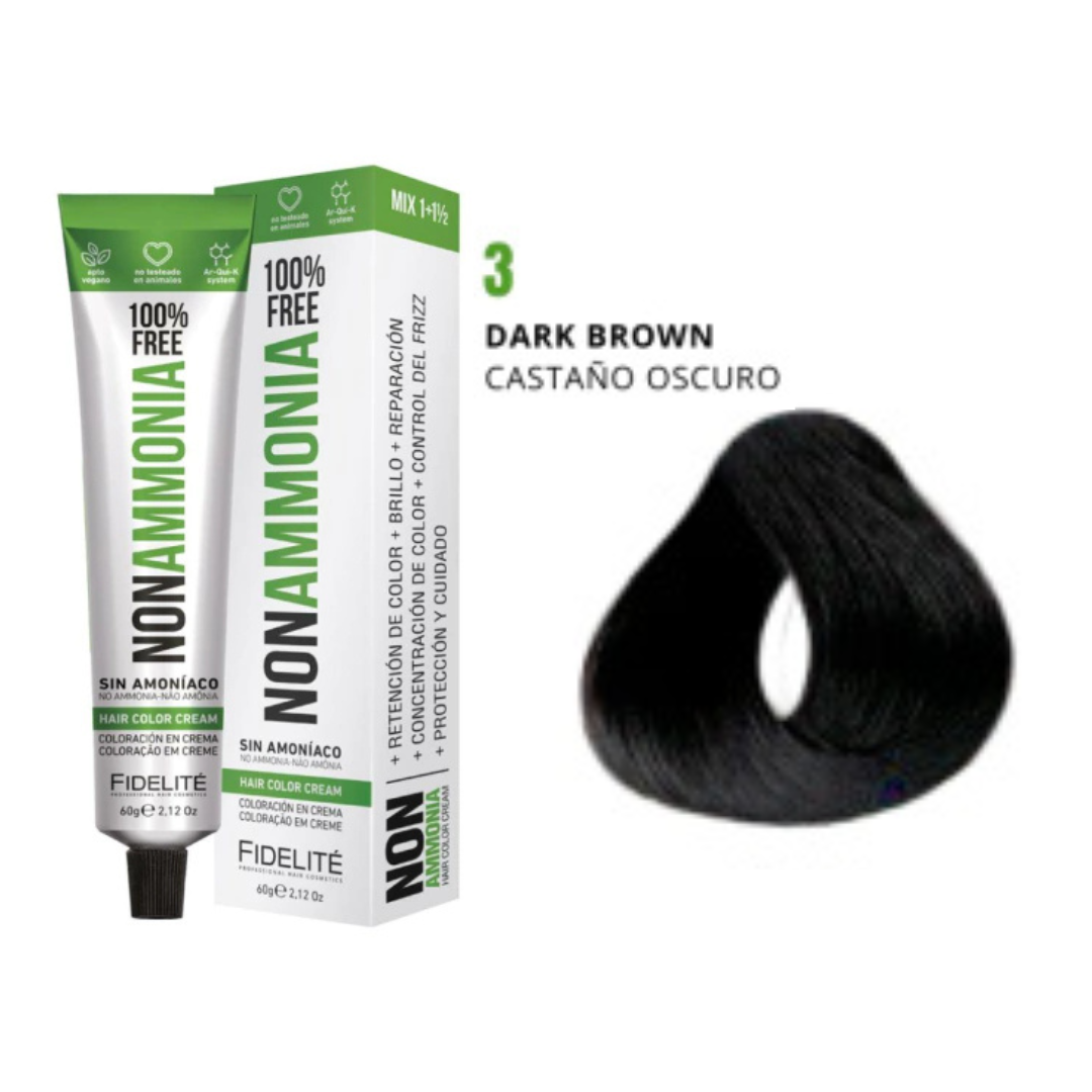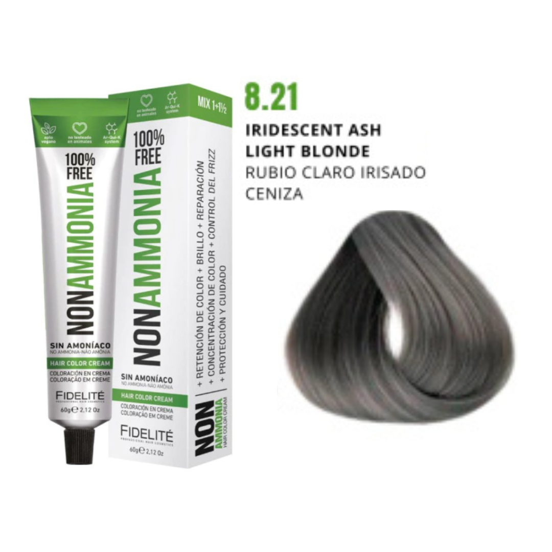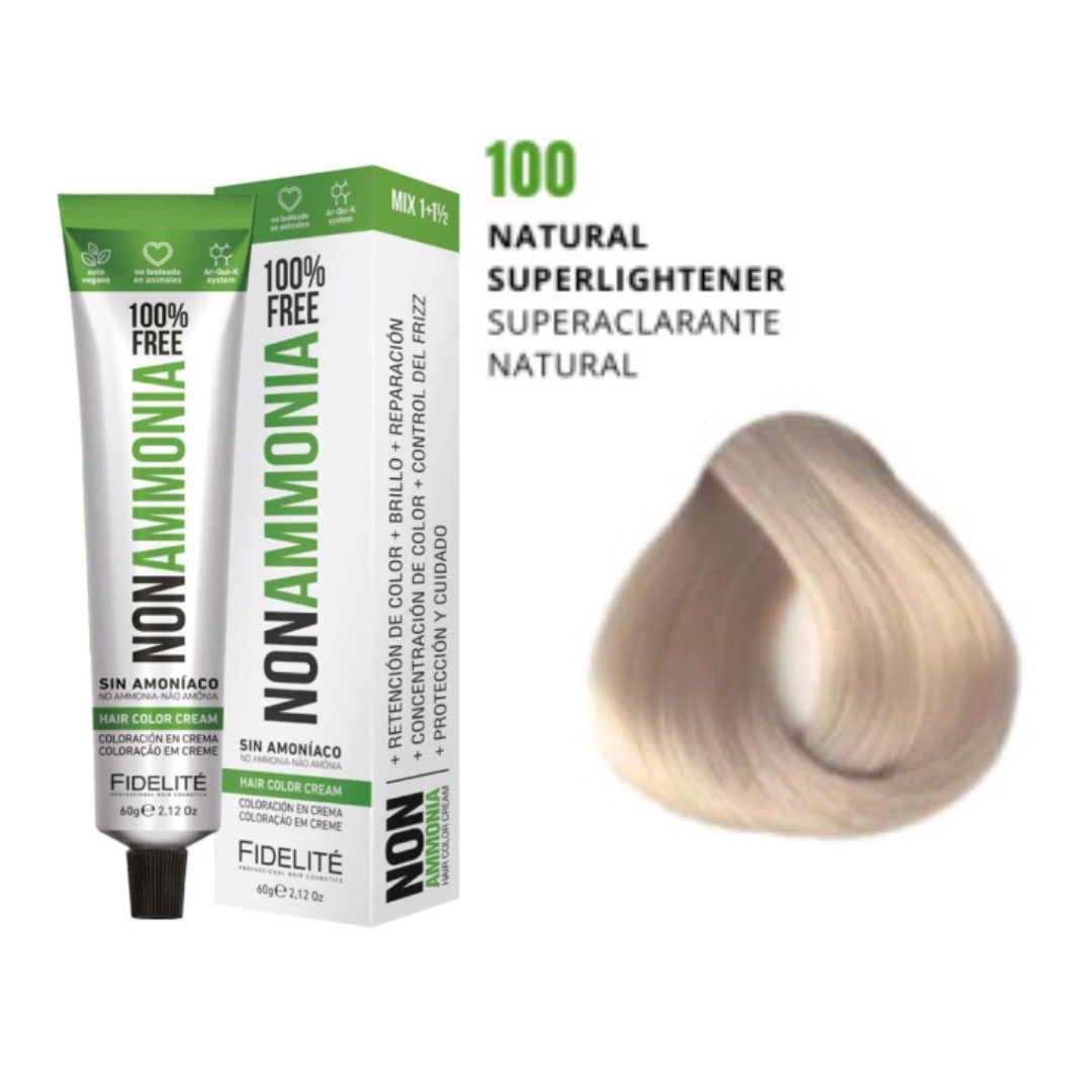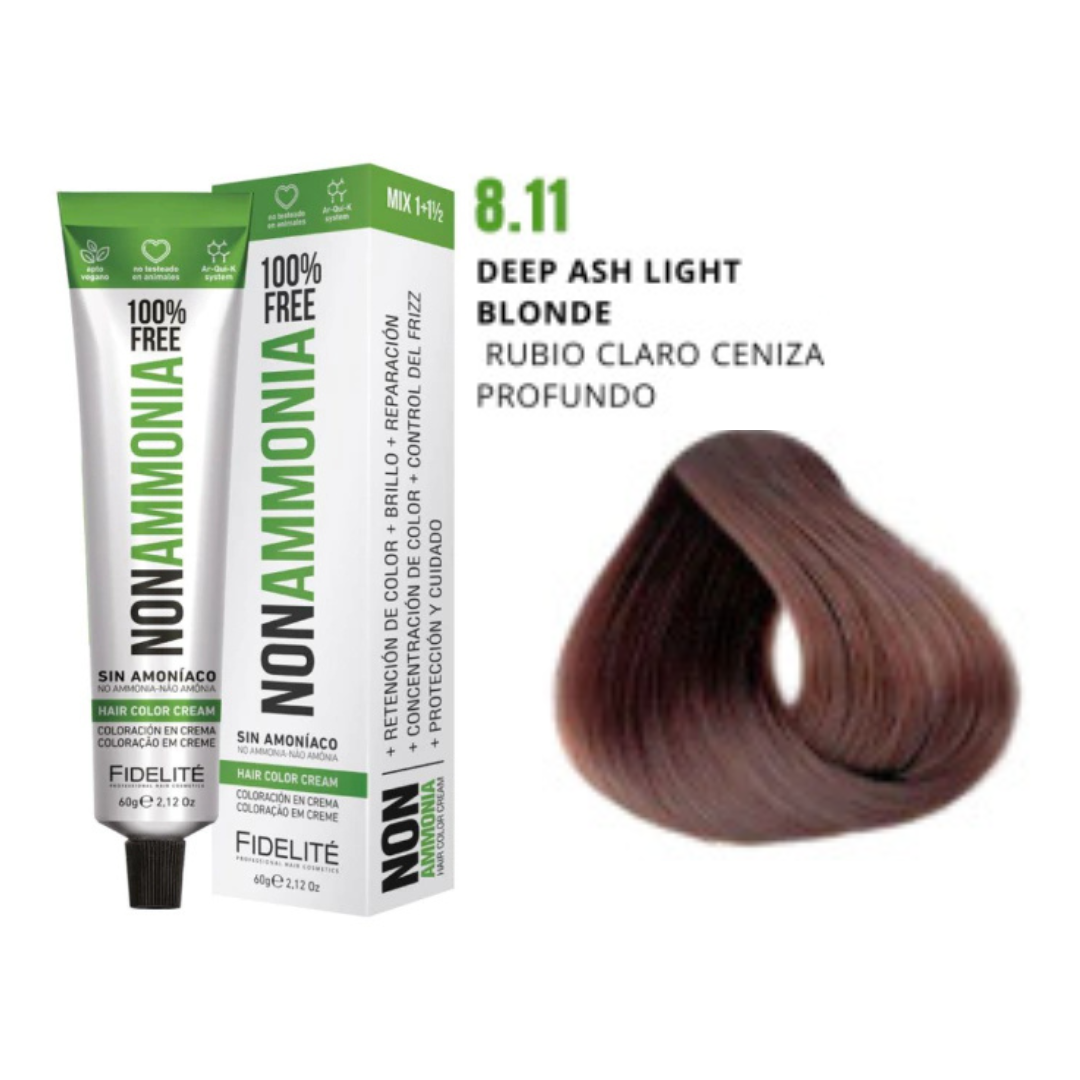 - El revelador utilizado. Por eso esta tintura debe utilizarse con el exclusivo REVELADOR FIDELITE NON AMMONIA, EN CREMA PARA TINTURA SIN AMONIACO.