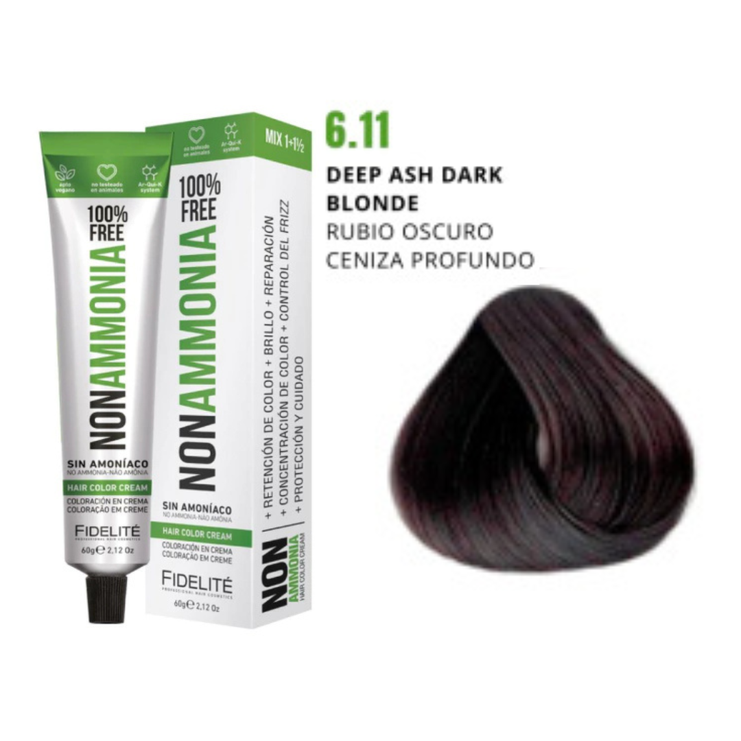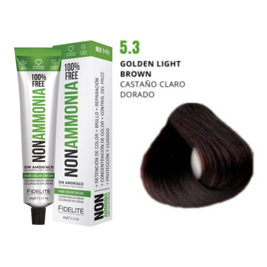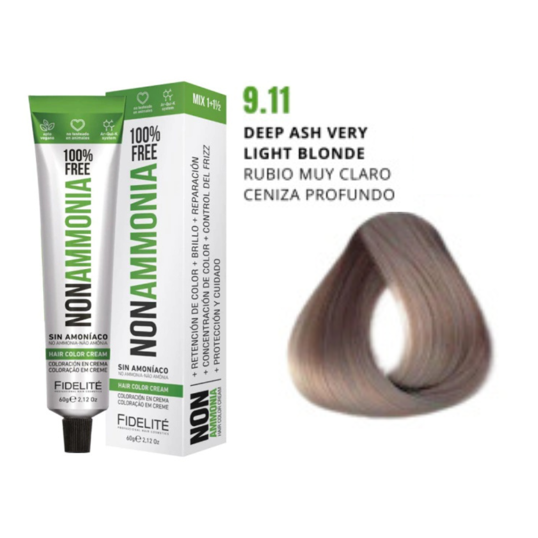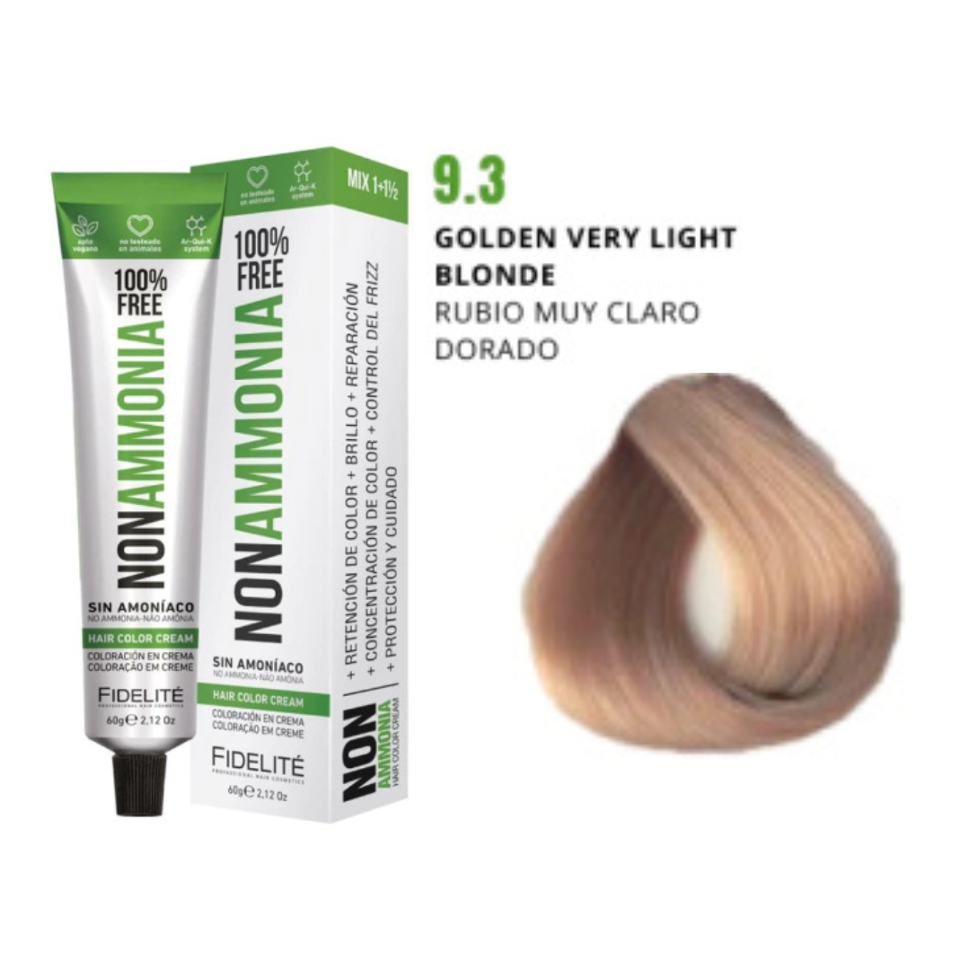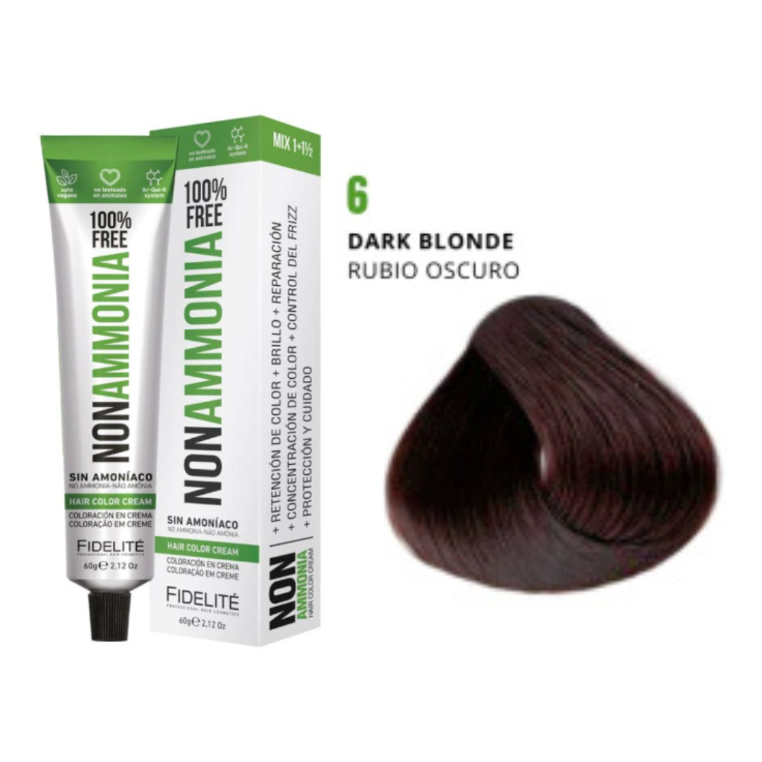 - El revelador utilizado. Por eso esta tintura debe utilizarse con el exclusivo REVELADOR FIDELITE NON AMMONIA, EN CREMA PARA TINTURA SIN AMONIACO.