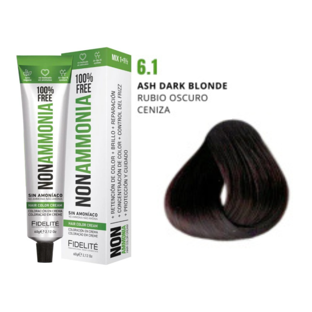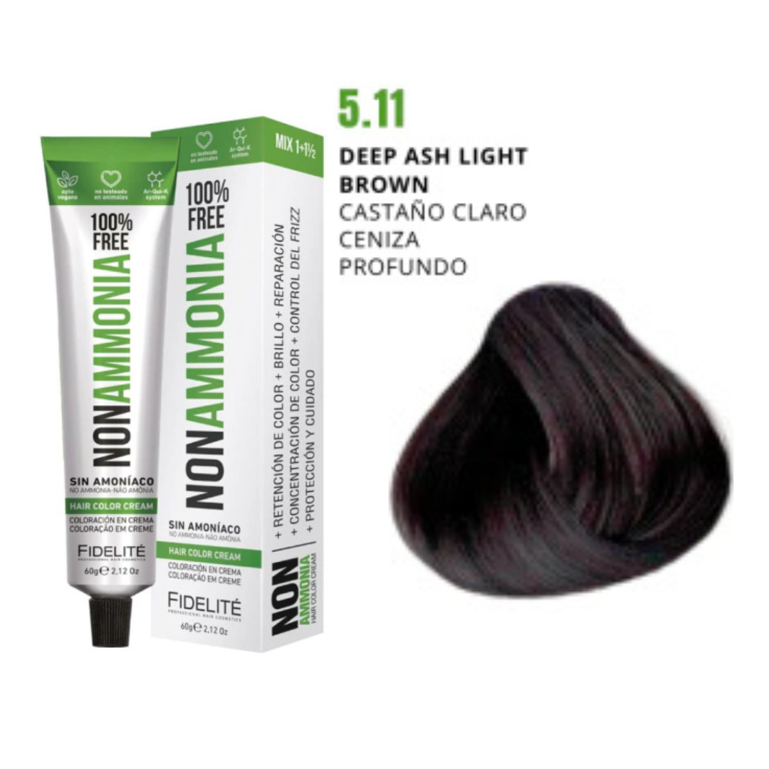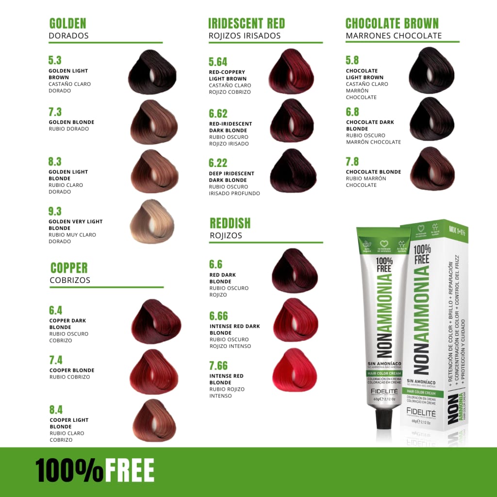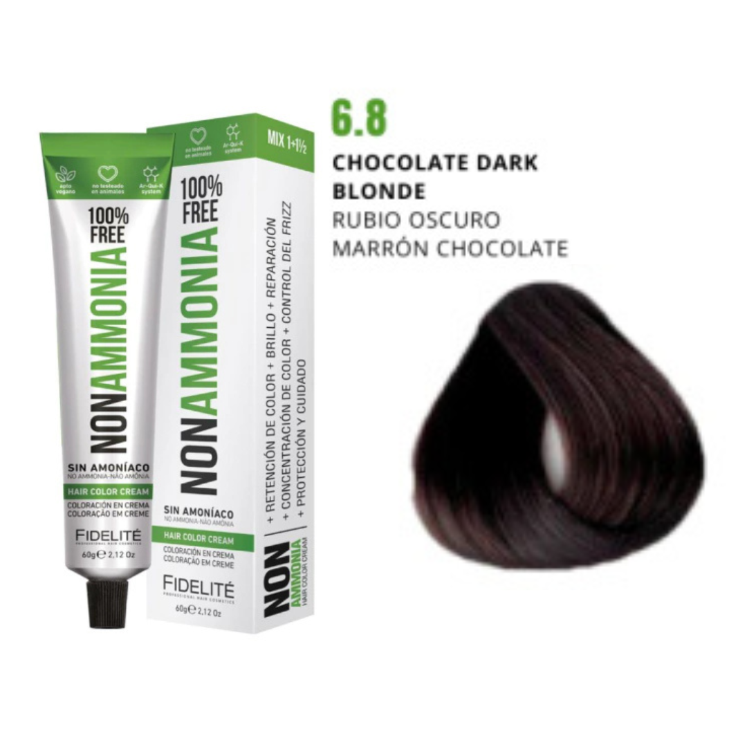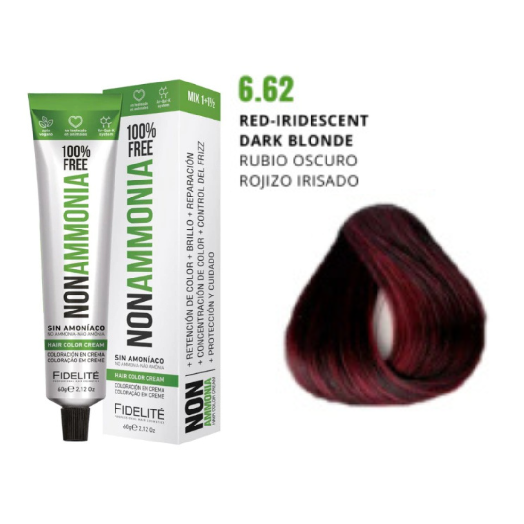 - El revelador utilizado. Por eso esta tintura debe utilizarse con el exclusivo REVELADOR FIDELITE NON AMMONIA, EN CREMA PARA TINTURA SIN AMONIACO.